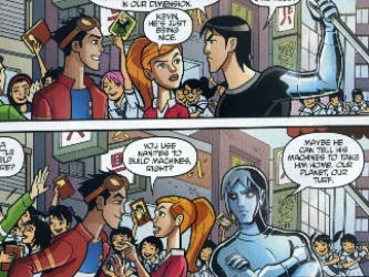 Kevin uses his power in a threatening manner when Rex flirsts with Gwen.